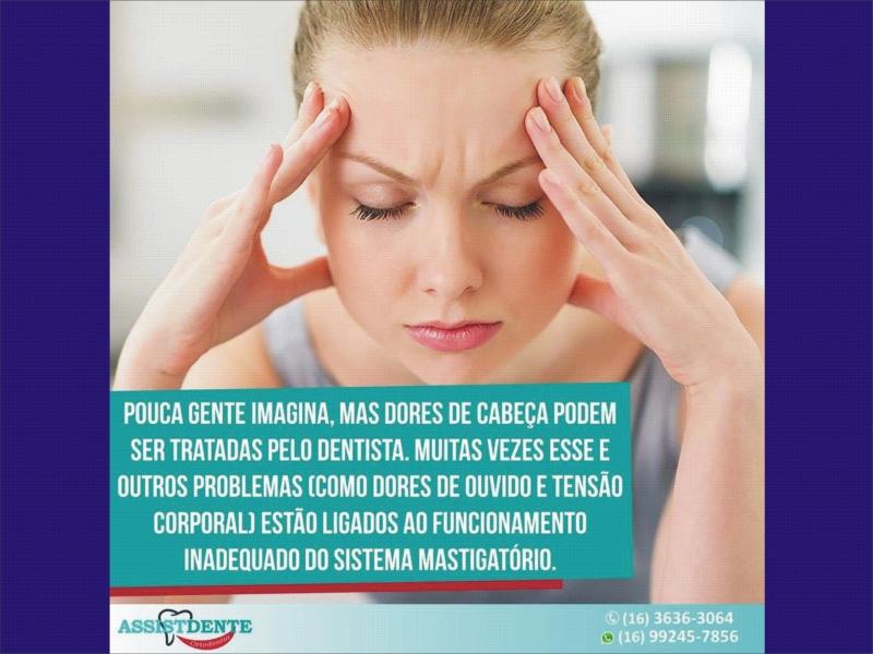 POUCA GENTE SABE MAS DORES DE CABEÇA PODE SER TRATADAS PELO DENTISTA, POIS MUITAS VEZES ESSAS DORES SÃO CAUSADAS POR PROBLEMAS NA MORDIDA, COMO DENTES TORTOS E MAL POSICIONADOS, MORDIDAS CRUZADAS , POSICIONAMENTO ERRADO DA MANDÍBULA ( TIPO QUEIXINHO PARA TRÁS E QUEIXINHO PARA FRENTE ).